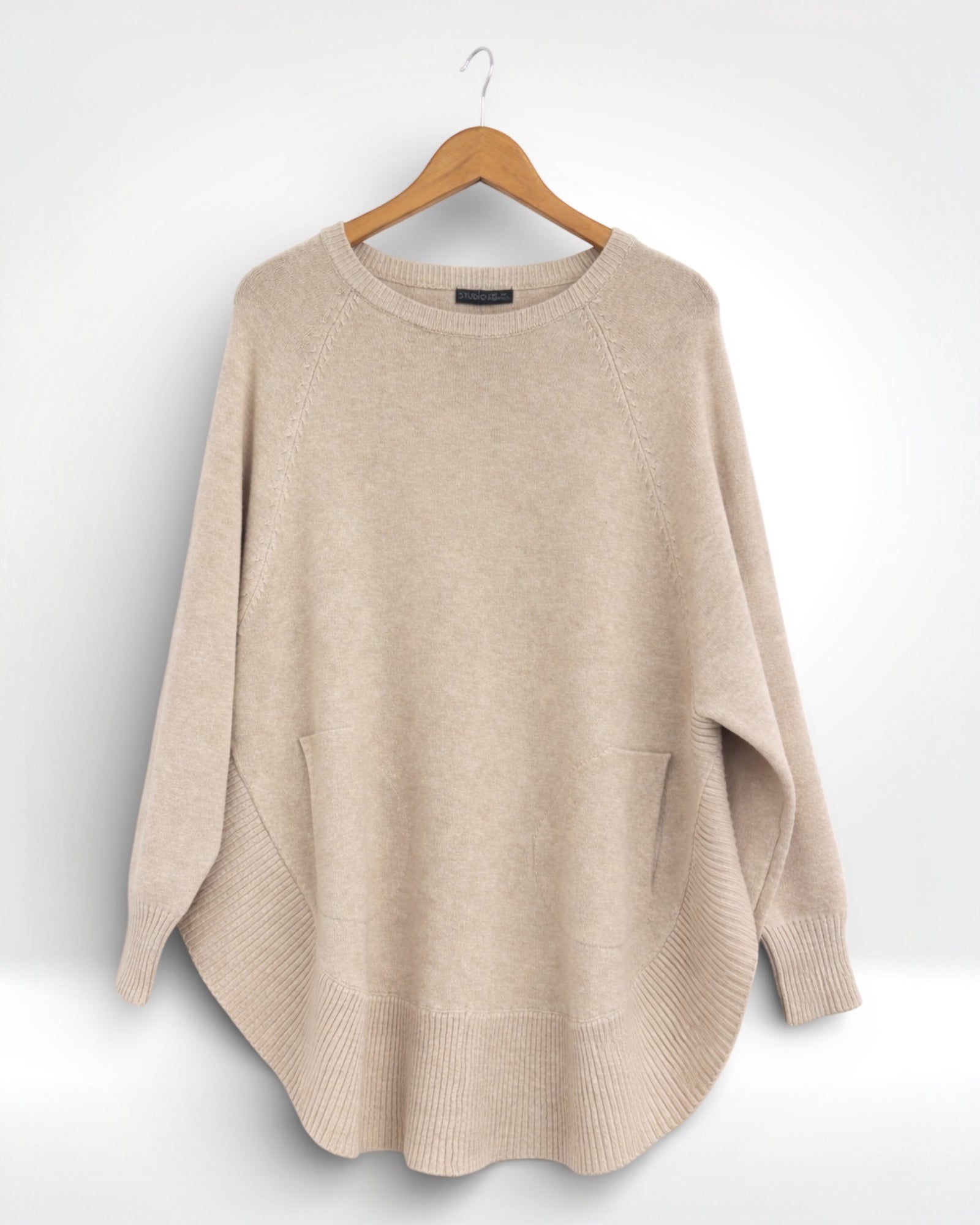 A modern take on a wardrobe staple. This soft-knit sweater offers a flattering longline fit, ribbed finishes, and functional front pockets—perfect for effortless, polished layering.