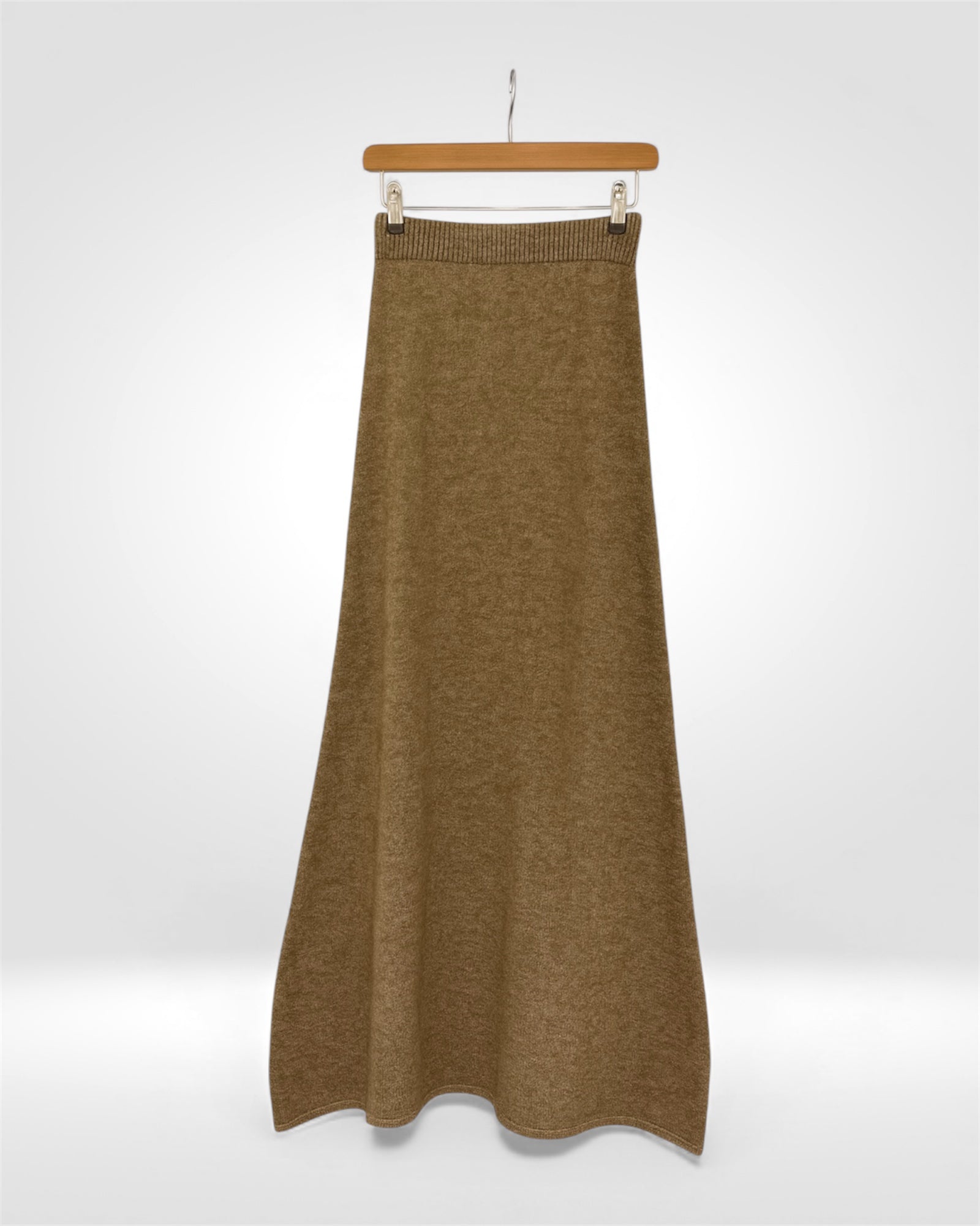 A soft, flowy knit maxi skirt designed for effortless comfort and everyday elegance. Featuring a stretchy ribbed waistband and a gentle A-line silhouette, this versatile piece drapes beautifully and pairs perfectly with sweaters, tees, and layered looks.