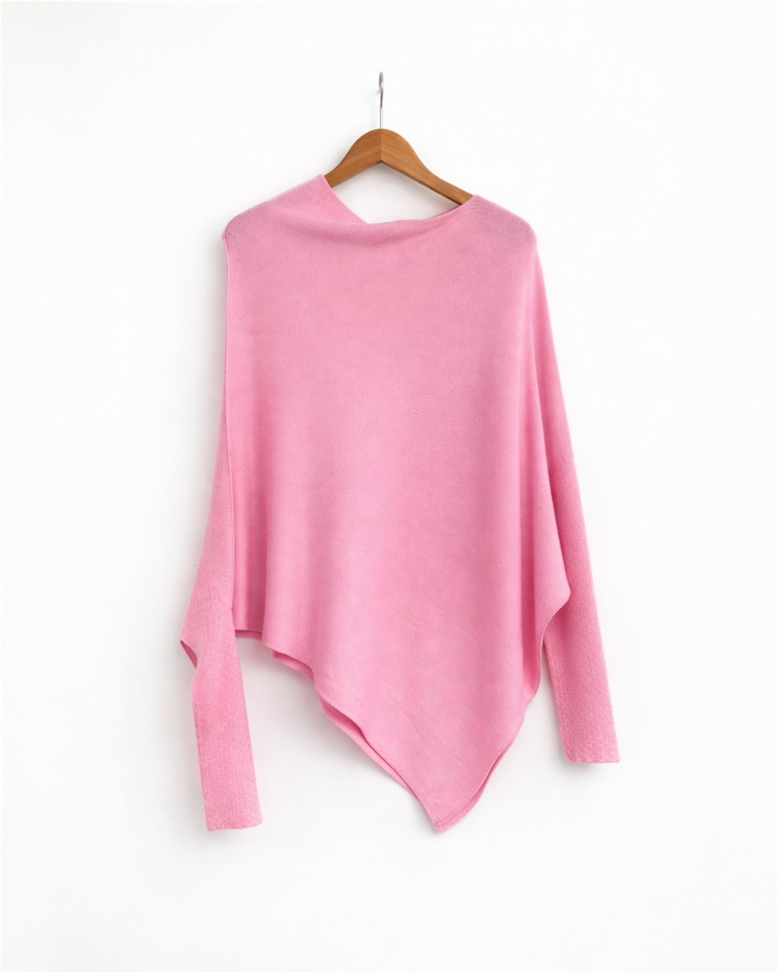 A soft, stylish knit jumper featuring an elegant asymmetric hem and relaxed neckline, offering a modern silhouette that’s perfect for effortless, cozy layering.