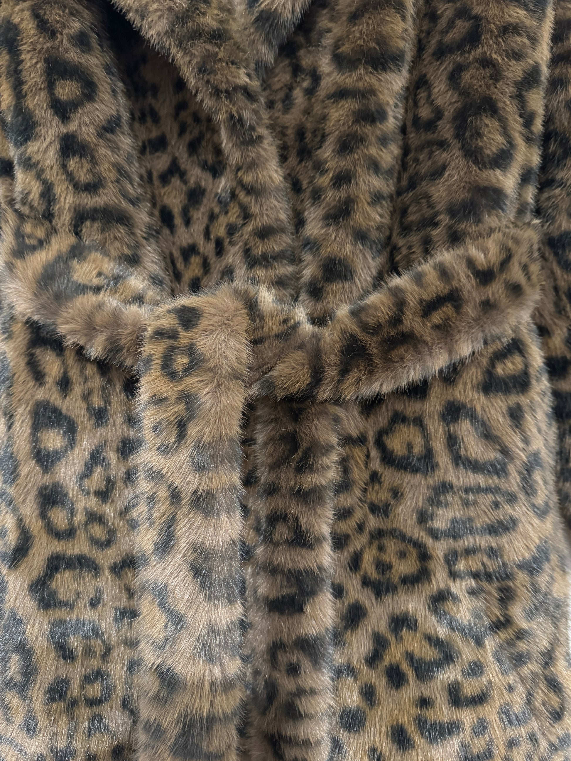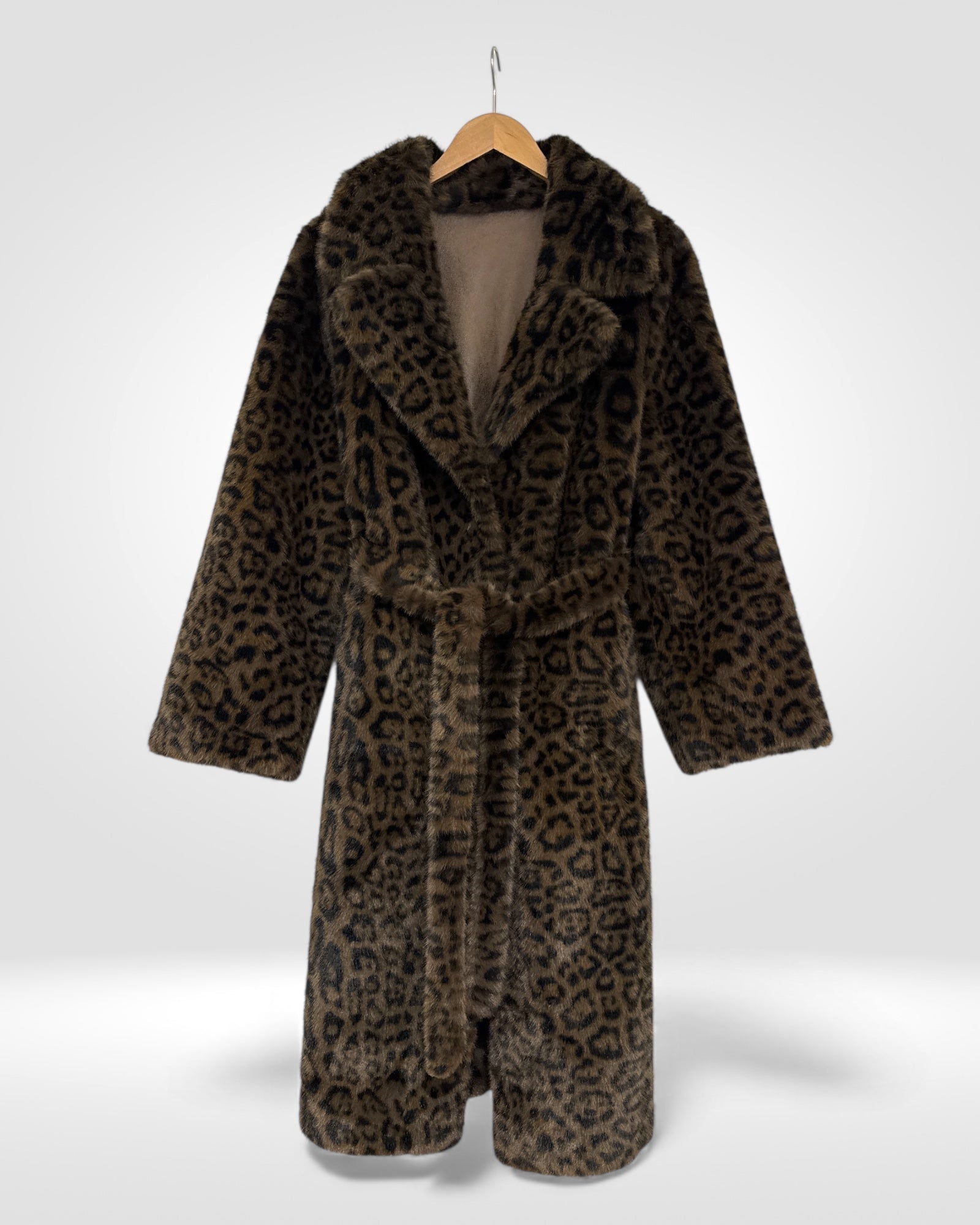 A statement long coat crafted from plush faux fur with an all-over leopard print. Featuring a relaxed silhouette and wide lapel collar, this coat delivers warmth, texture, and bold style—perfect for elevating everyday outfits or cold-weather evenings.
