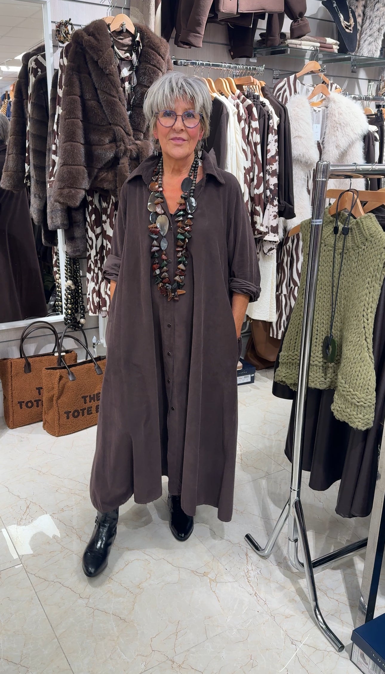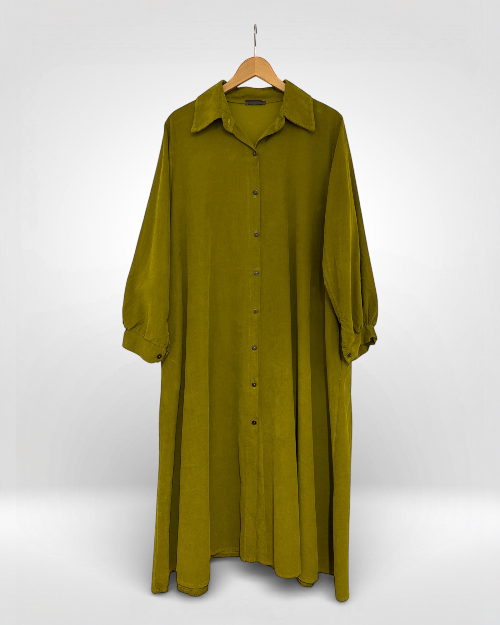 A beautifully crafted fine-needle cord shirt dress made from 100% cotton for a soft, breathable feel. Designed in Italy, it features a relaxed silhouette, button-through front, and gently gathered sleeves — a timeless, effortless piece for everyday elegance.