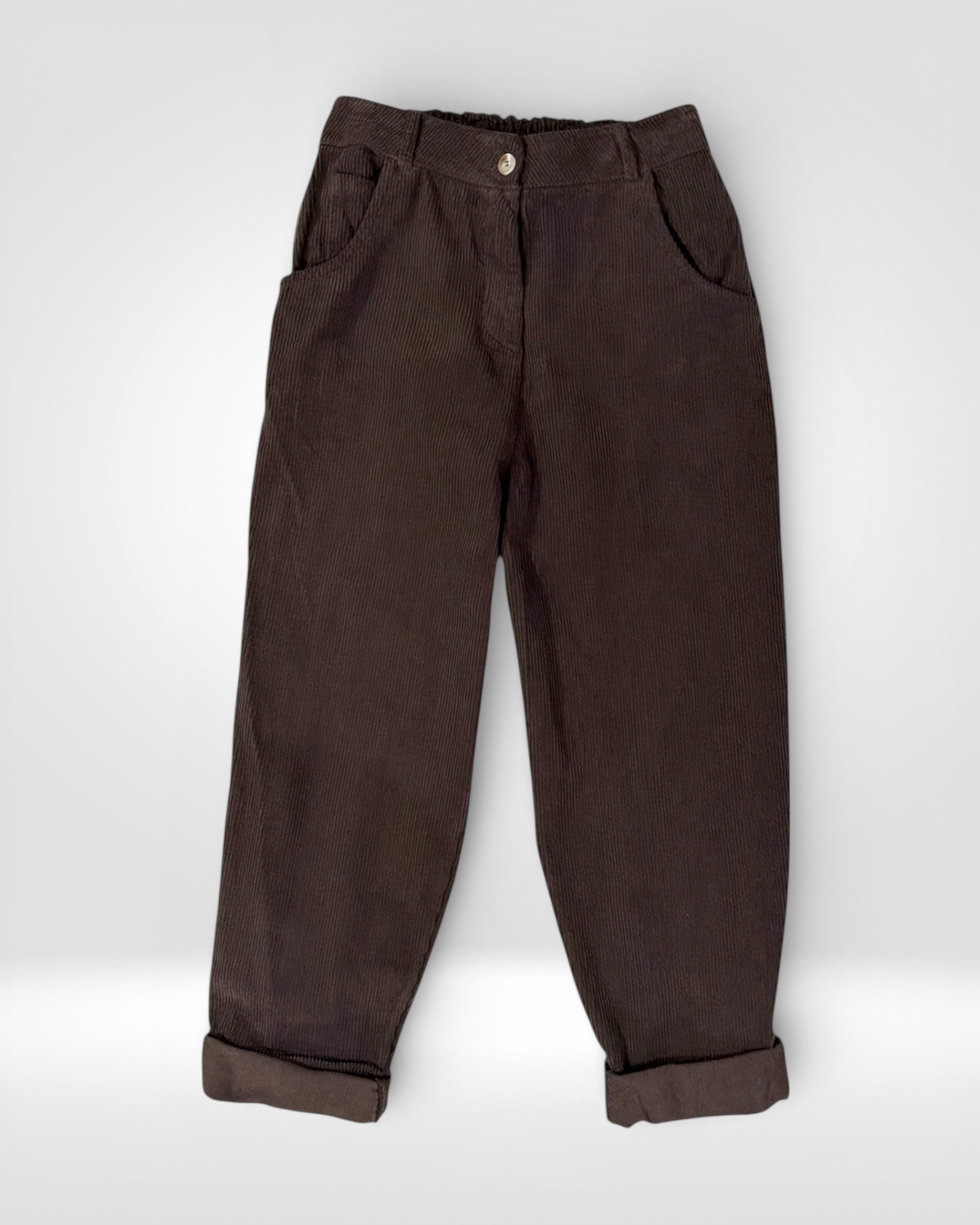 Soft, relaxed-fit corduroy trousers with a gently tapered leg—effortless comfort with timeless style