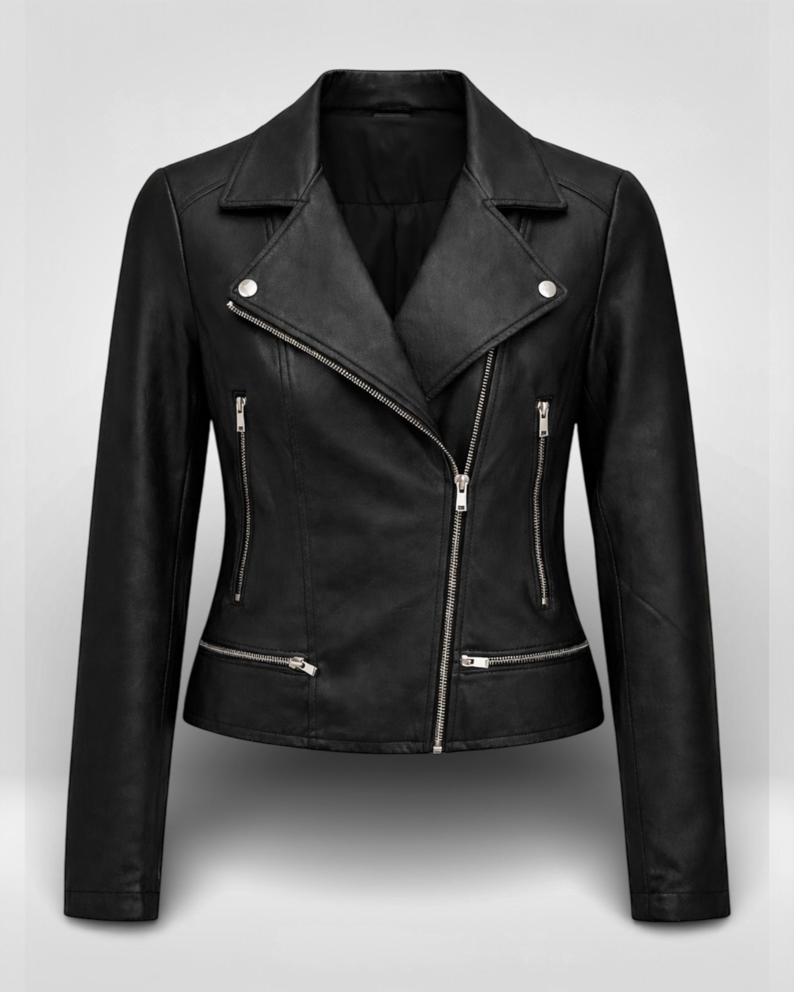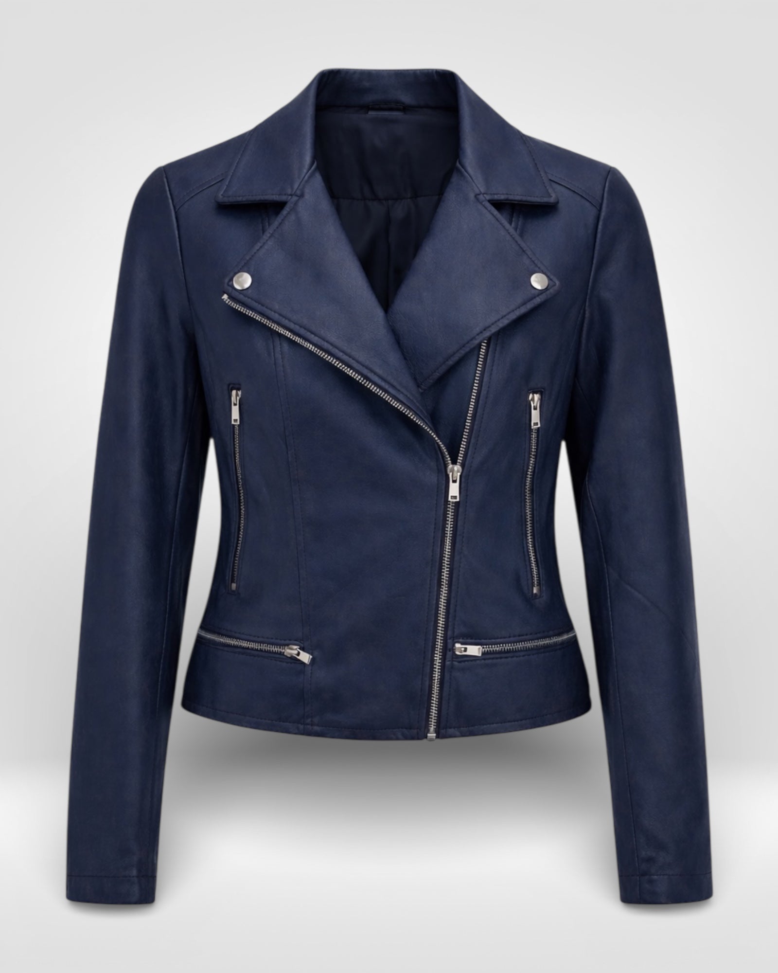 A modern take on the classic biker jacket, crafted from soft, high-quality faux leather with a smooth matte finish. Designed with an asymmetric zip front, silver-tone hardware, and a flattering tailored fit, this jacket is perfect for everyday wear. Fully lined for comfort and easy layering, it adds effortless polish to both casual and dressed-up looks. Available in Chocolate Brown, Navy, and Black. You