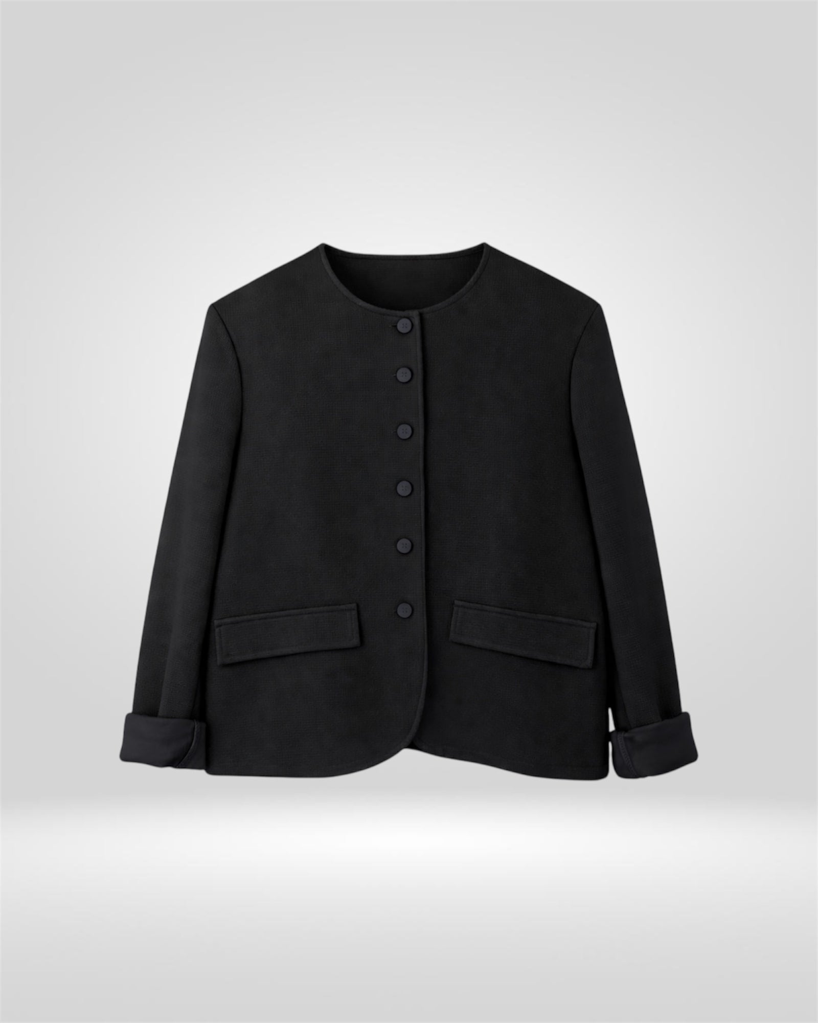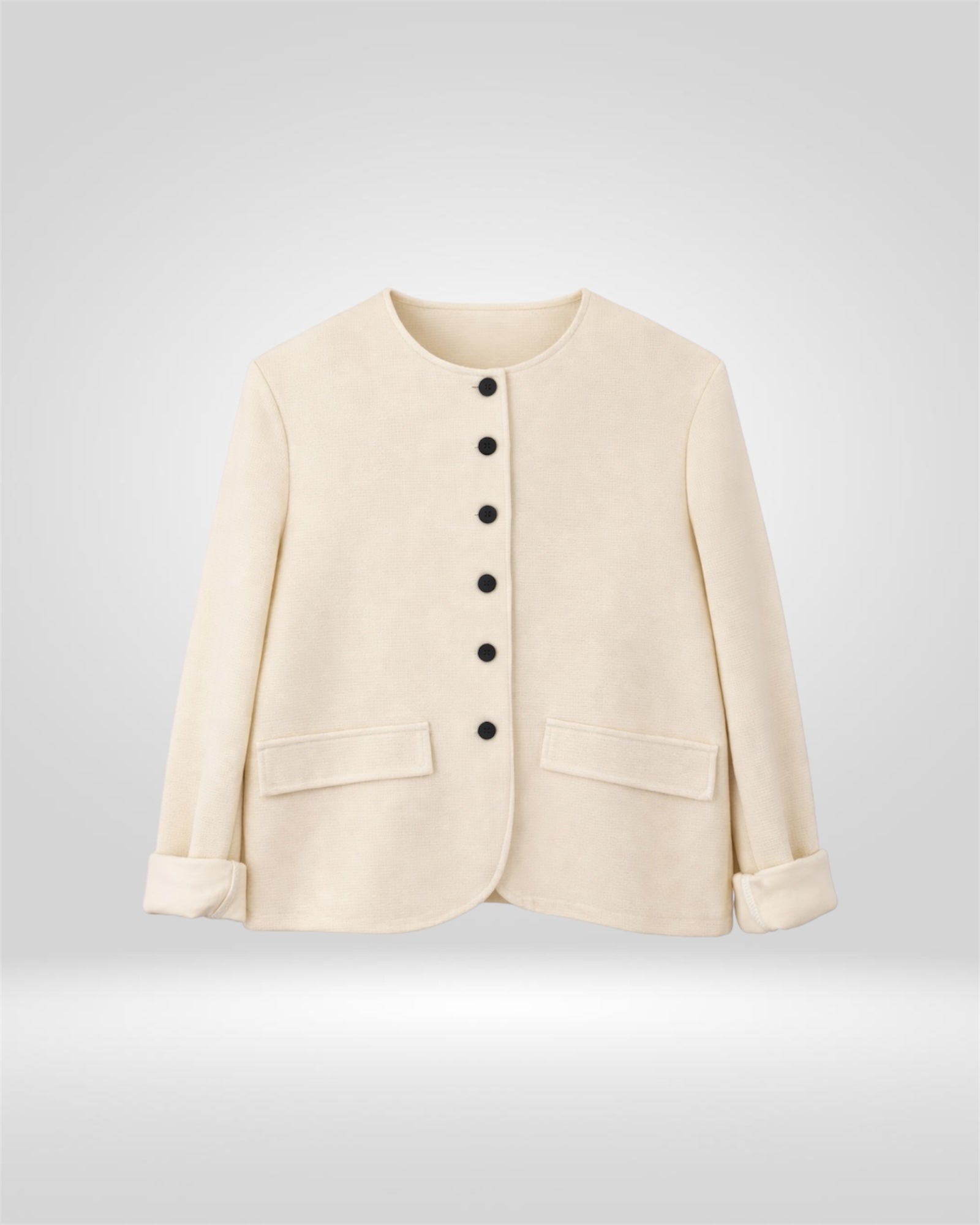 A refined, collarless jacket designed to elevate everyday dressing. Featuring a softly structured silhouette, contrast buttons, and relaxed cuffed sleeves, this piece works effortlessly as part of a statement co-ord or styled on its own. Timeless, versatile, and made to move with you.