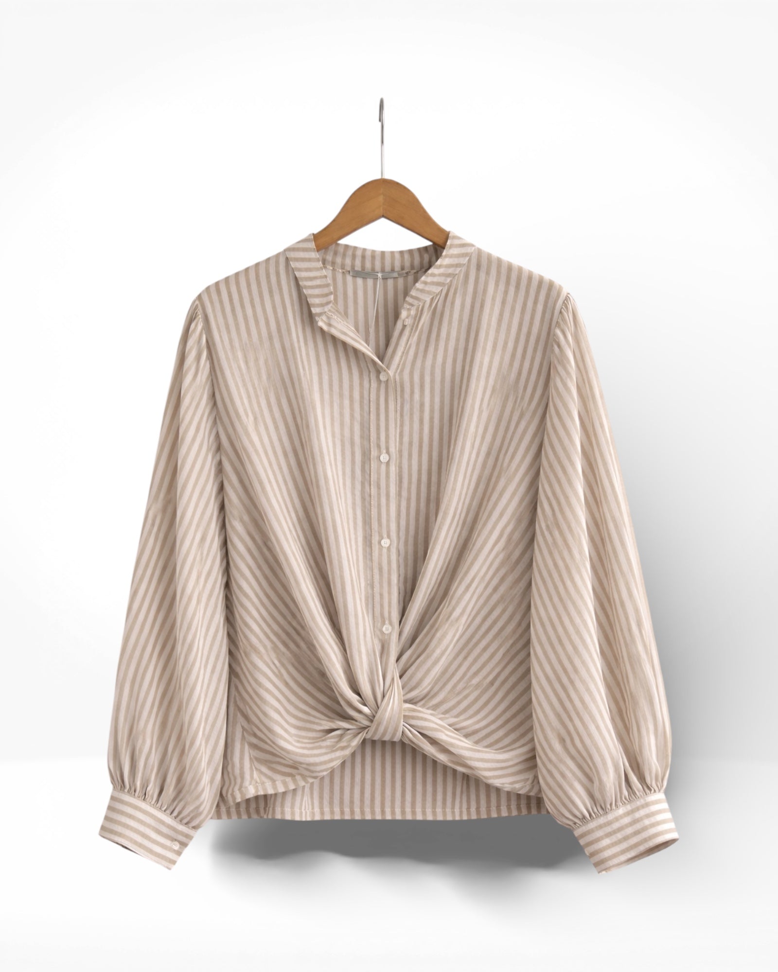 A lightweight 100% cotton shirt crafted in a soft, breathable fabric. Designed with a relaxed fit, classic stripe, and an unexpected twist detail at the hem for a modern, flattering finish. Easy, airy, and perfect for everyday wear.
